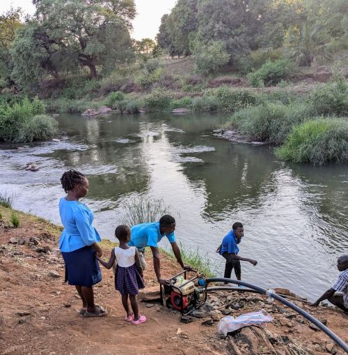 Penninah und ich waren beeindruckt von dieser Oase, die in dem trockenen Gebiet mit Hilfe von künstlicher Bewässerung geschaffen worden war. Und wir waren uns einig: Penninah braucht eine Solarpumpe, um das Wasser vom Fluss zu dem Permakultur Projekt auf ihrem Land zu pumpen! Bislang nutzte sie einen Diesel-Generator, um Wasser für den Hausgebrauch und zur Bewässerung der Pflanzen in einen Tank zu pumpen.